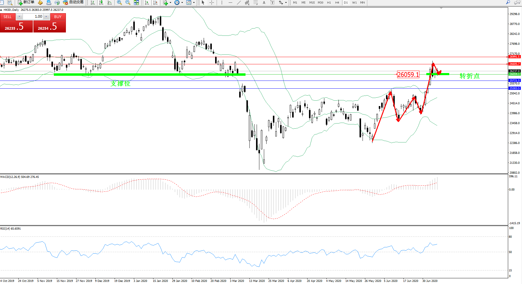 香港恒生指数7月9日(周四)收盘上涨80.98点,涨幅0.31%,报26210.16点;港股三大指数均收涨,恒指盘中曾几度转跌,尾盘回升明显。南下资金大幅流入90.39亿港元,大市成交额为2068亿港元。南美疫情持续蔓延推动铜价上涨,江西铜业大涨逾7%;军工股、半导体延续强势,中船防务再飙近18%;新冠肺炎在香港出现第三波暴发,香港本地股普跌。阿里涨10%创新高,美团涨5%,小米涨4.6%,阿里、美团及小米8月可纳入成份股选股范围。港交所推新产品的步伐快于预期,如果成交量快速上升,将可提升现时预测。港交所潜在上升的催化剂,包括市场活动大幅增加、中概股加快回归作第二上市、GBA的流动性改善及投资收入较预期佳。