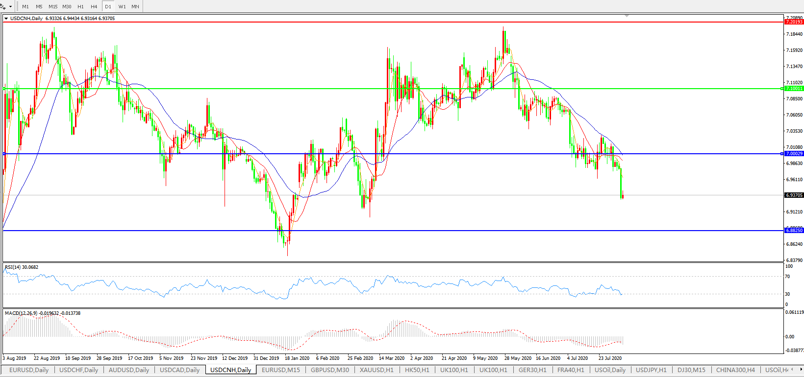交易策略: 在7.1000之下,看跌,目标价位为7.0000,然后为6.8820。