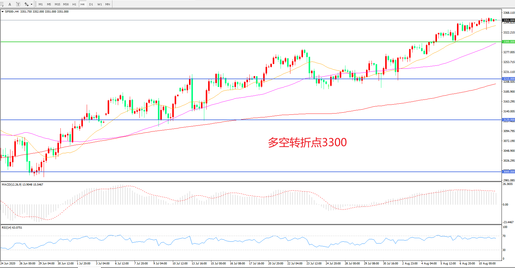 多空转折点:3300.00
