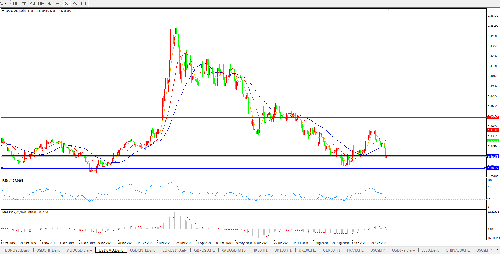 美元兑加元USDCAD    日线图:
