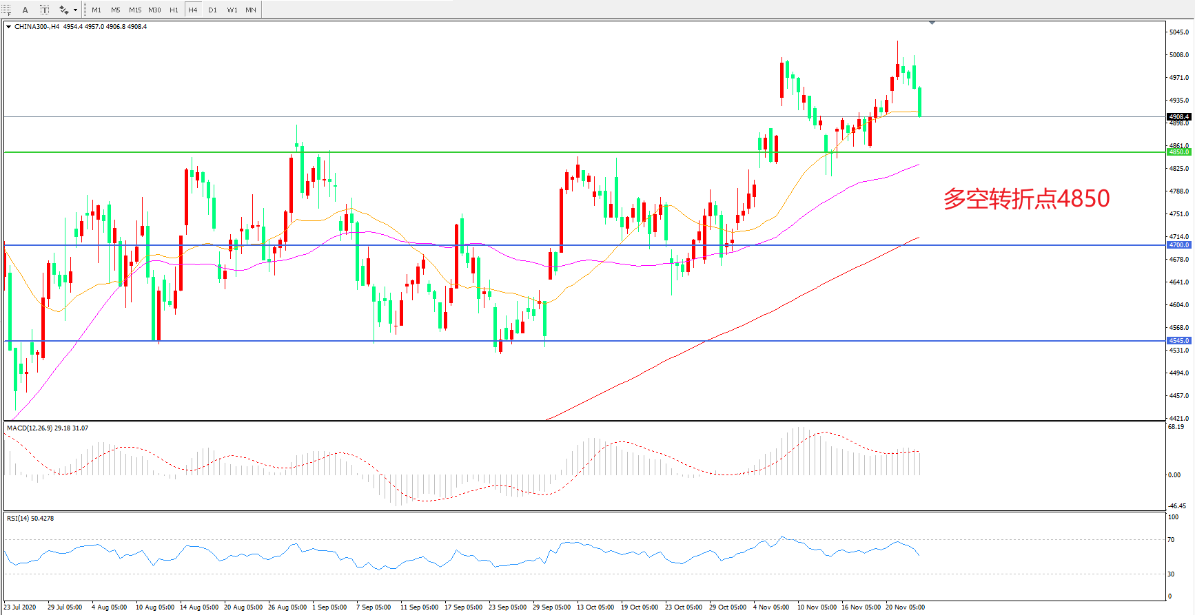交易策略:在4850.00之上看涨,目标5000.00       5150.00