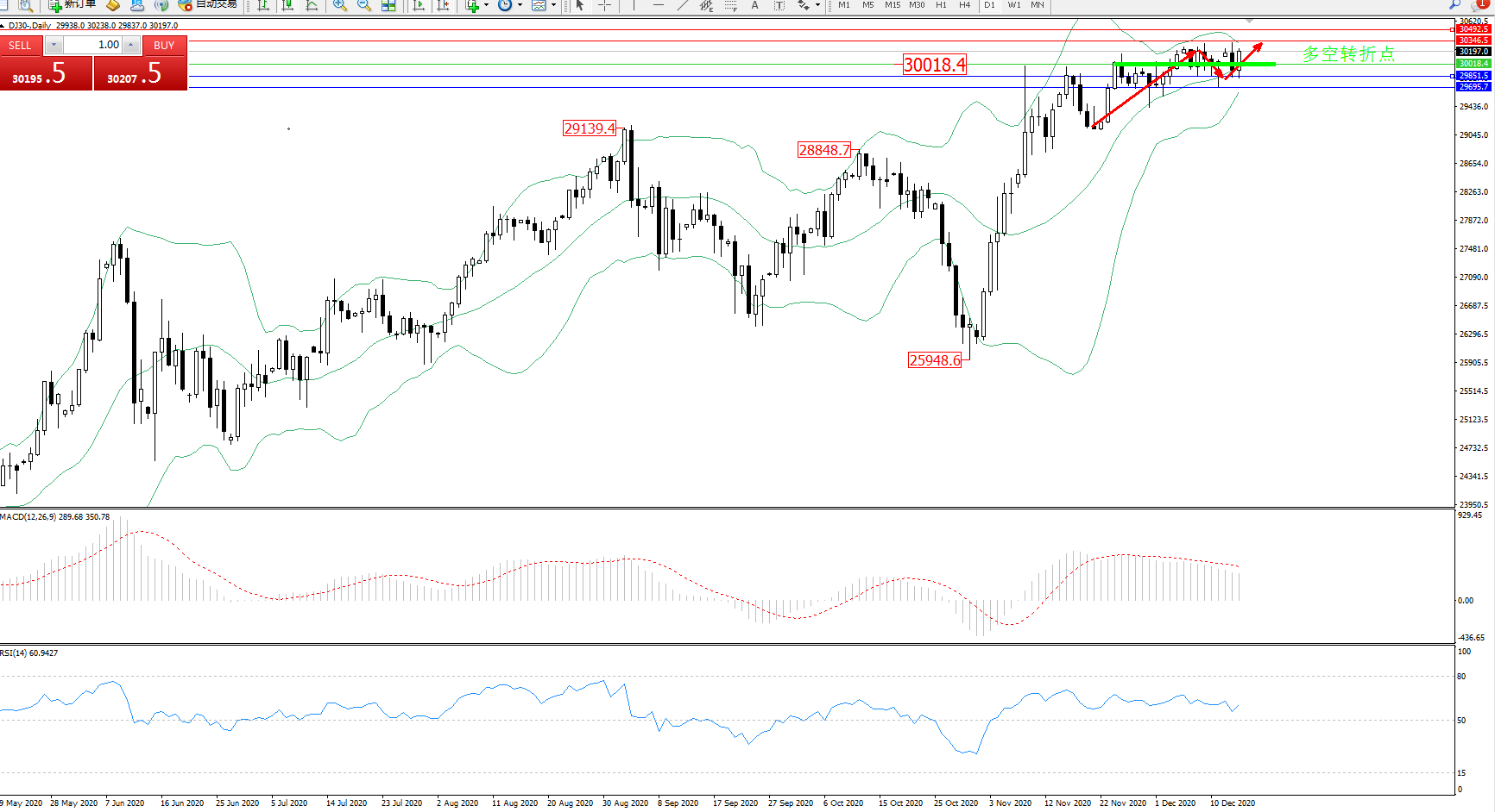 道琼斯指数12月15日(周二)收盘上涨338.40点,涨幅1.13%,报30199.90点。美股三大指数集体收涨,美国股市止步四连跌,市场对于美国国会两党达成抗疫刺激协议的乐观预期升温。美国参议院多数党领袖麦康奈尔表示,国会不通过抗疫救济方案就不会休会。华尔街对于国会达成救济方案越来越有信心,并且新冠疫苗接种在美国继续顺利推进。美国监管机构表示,Moderna的疫苗是安全的,并且对预防新冠病毒有效,从而为第二种新冠疫苗将迅速获得紧急授权扫清道路。激协议仍是市场的焦点,因为它是通向大规模疫苗接种的必要桥梁,鉴于近期经济数据将放缓的预期,投资者希望早日看到达成协议。如果没有达成协议,市场动荡可能会加剧。