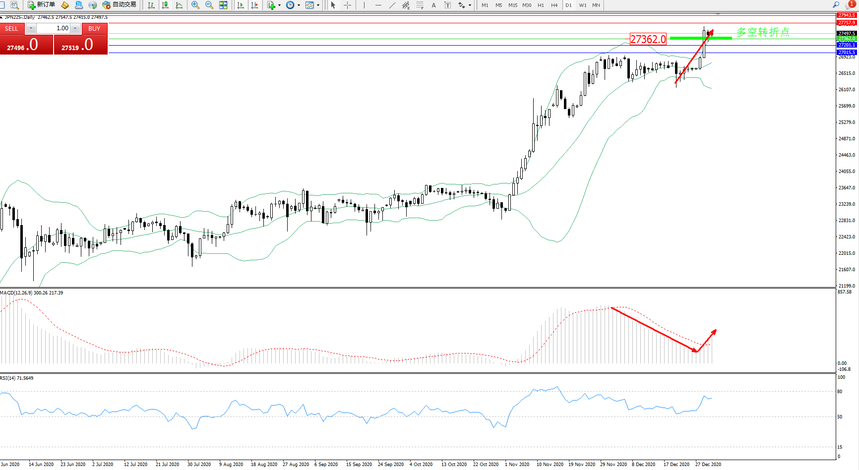 日经225指数12月30日(周三)收盘下跌100.15点,跌幅0.36%,报27468.00点。受元旦假期影响,多国股市今日休市或提前收市,据日本共同社:东京首次单日新增超过1000例新冠肺炎确诊病例。日本厚生劳 动大臣证实6例新冠变异病例是从英国和阿联酋返回日本的人。各国相继确认到变异新冠病毒后,虽然日本政府采取了禁止全球外国人入境日本的措施,但有意见指出,还应该叫停与部分国家和地区正在实施的商务人士可以相互往来的措施,日本政府正在面临艰难的抉择。