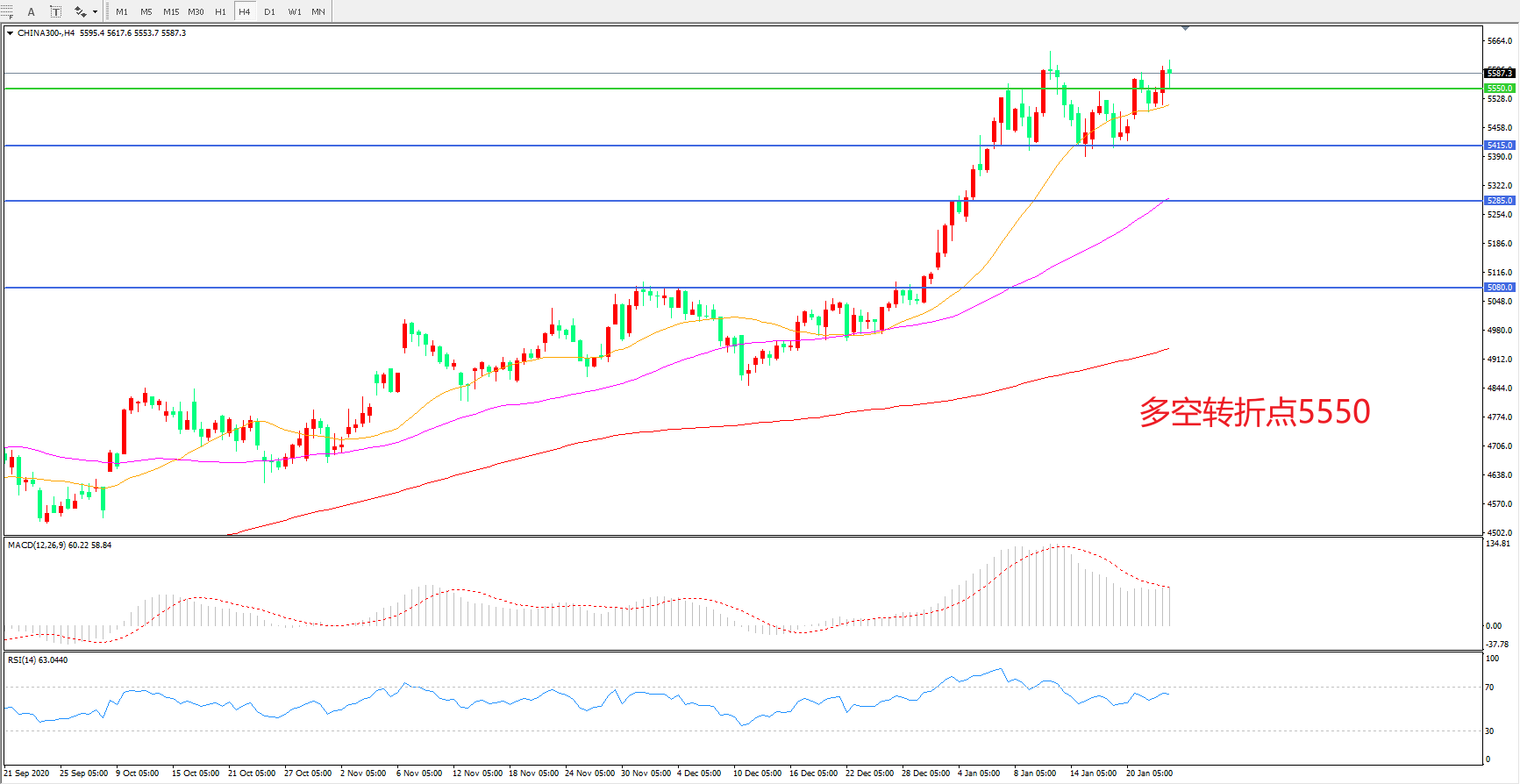 交易策略: 在5550.00之上看涨,目标5680.00 5800.00