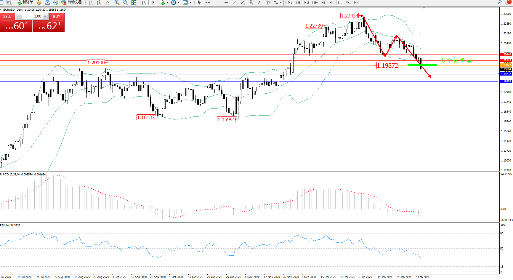 交易策略:1.19872下方看跌,目标1.19232、1.18699