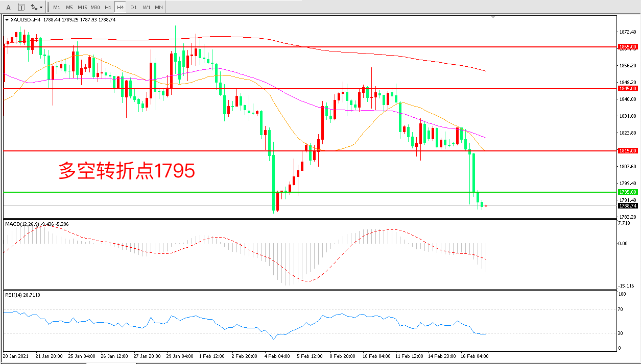 交易策略:在1795.00之下看,目标1815.00    1845.00