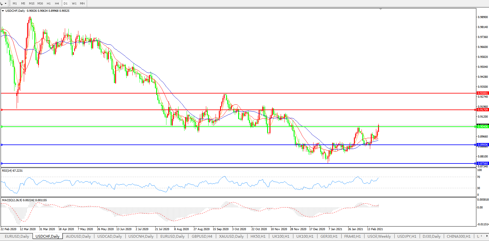 交易策略:0.9040上方看涨,目标0.9170、0.9300