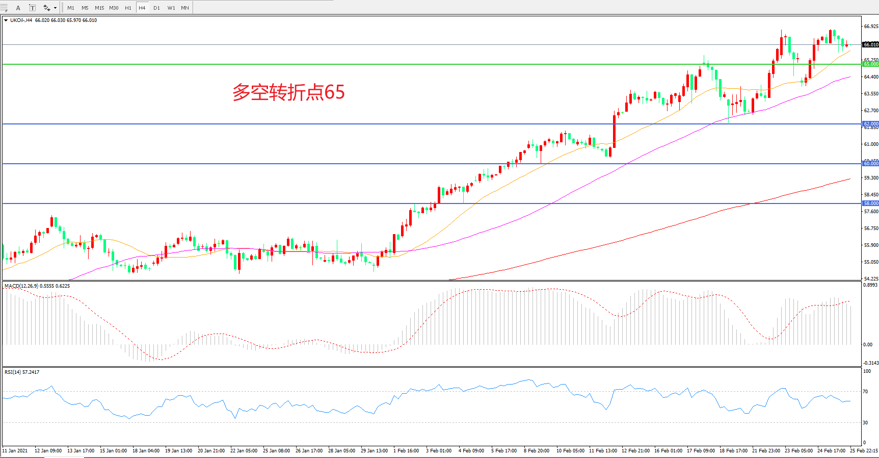周四(2月25日),美国最新公布的初请失业金人数、耐用品订单和四季度GDP修正值均表现强劲,表明美国经济正从疫情中复苏,市场风险情绪受到提振,布伦特原油延续强势表现,窄幅震荡后收报66.01美元/桶。目前各大机构都对未来的油价信心满满,做多仍然是市场主流的思路,但是随着OPEC+3月会议日期越来越近,供应端不排除会出现引发油价剧烈波动的因素。