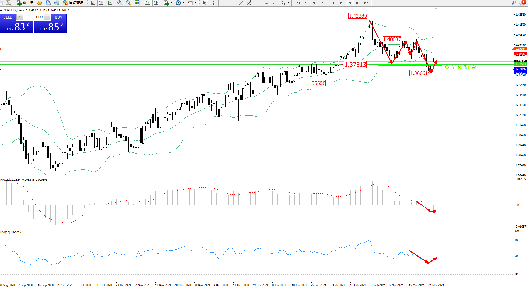 交易策略:1.37513上方看涨,目标1.38547、1.38064