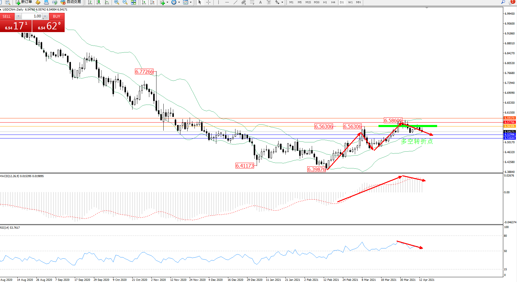 交易策略:6.56306下方看跌,目标6.52996、6.51644