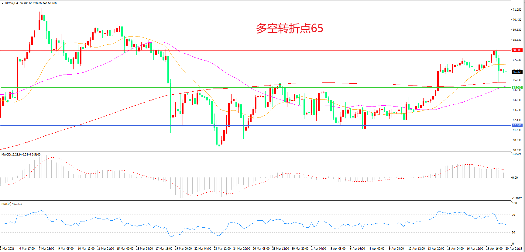 周二(4月20日),印度疫情卷土重来导致市场风险情绪回落,布伦特原油大幅回撤后,收报66.26美元/桶。根据印度卫生部公布的最新数据,过去24小时内,印度新增新冠肺炎确诊病例259170例,作为世界第五大经济体的印度,疫情如此失控,将会对油价需求产生明显影响,疫情卷土重来的阴影会在情绪上对市场产生冲击。