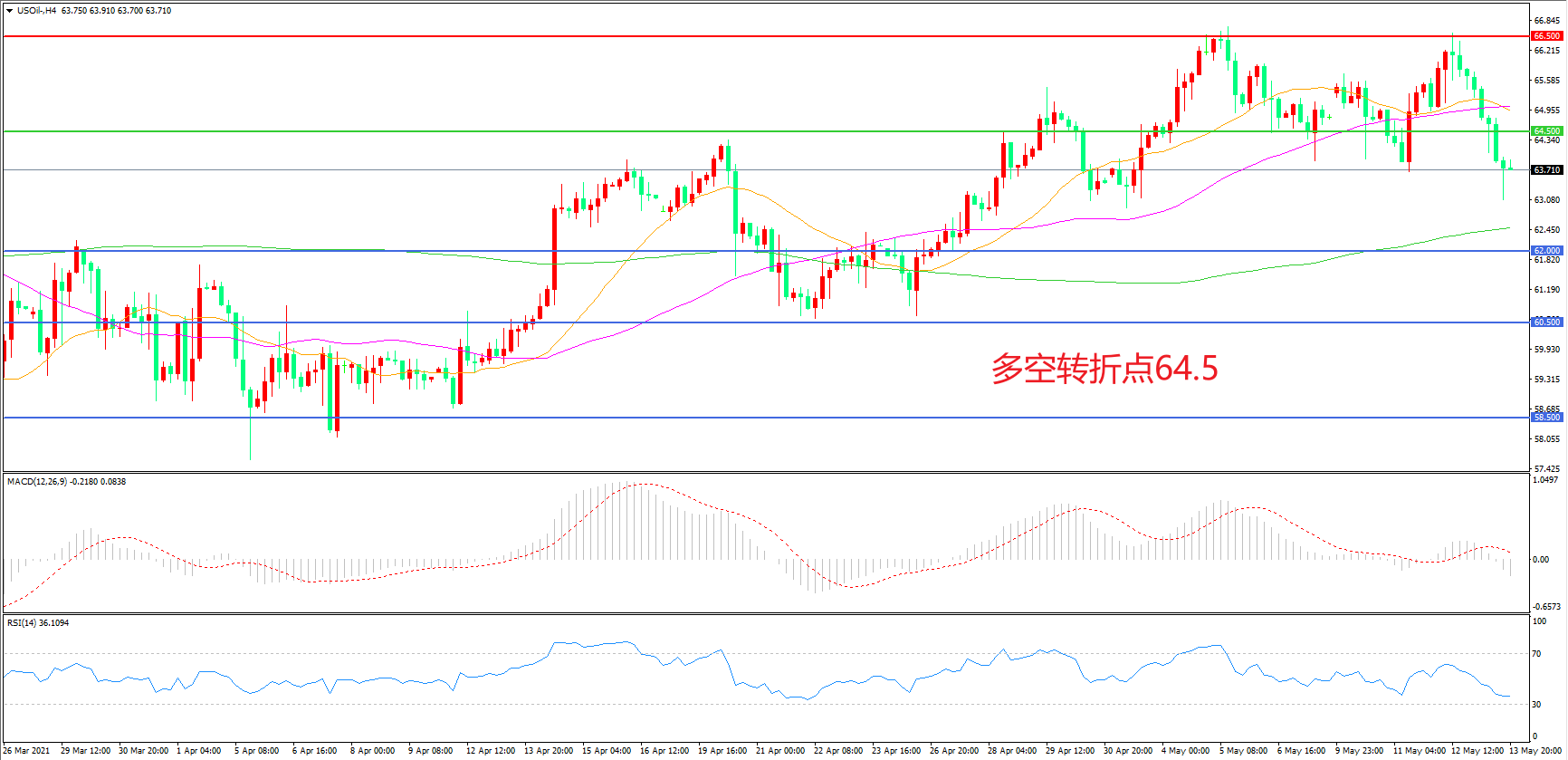 交易策略:在64.50之下看跌,目标62.00    60.50