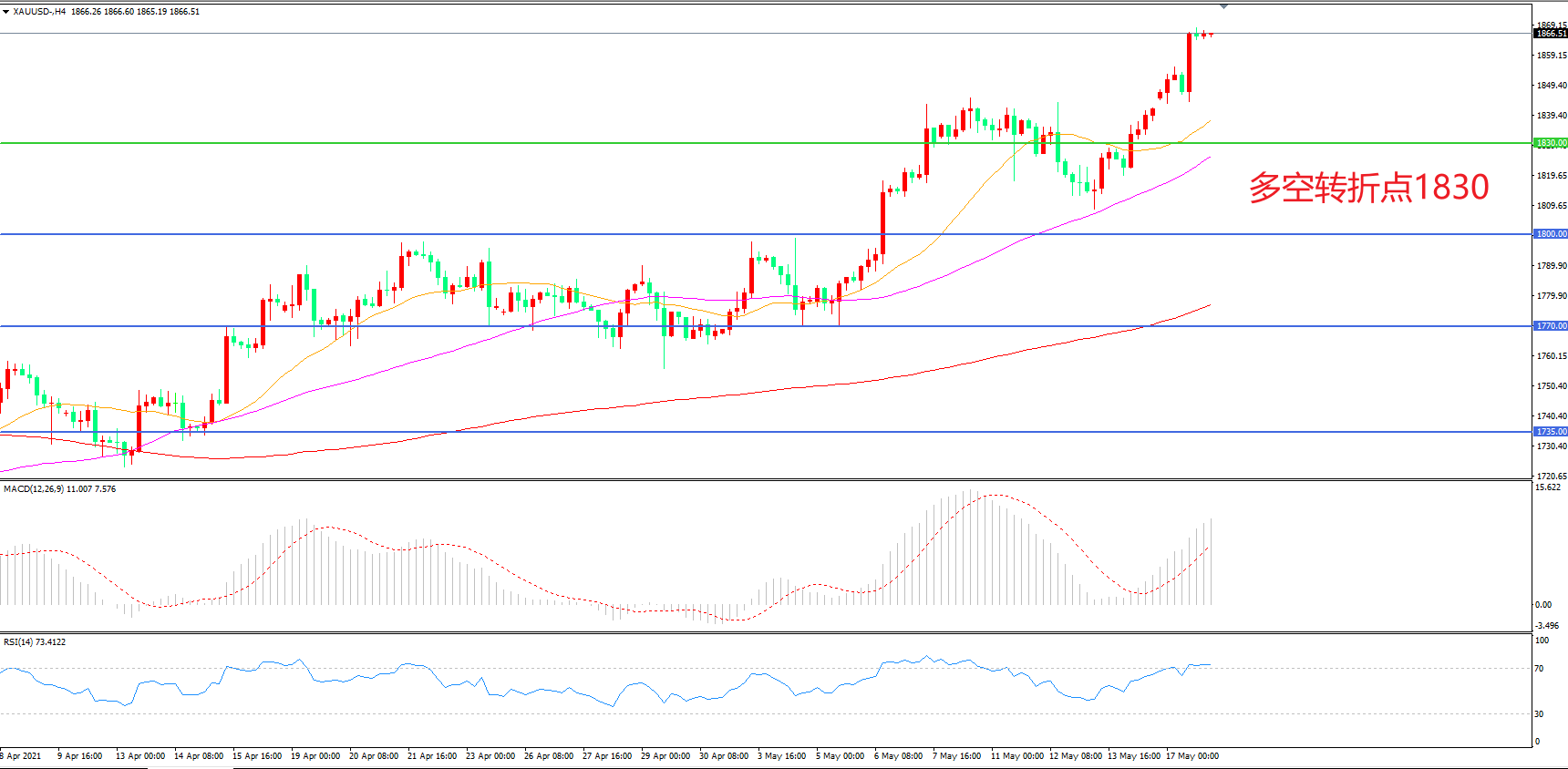 多空转折点:1830.00