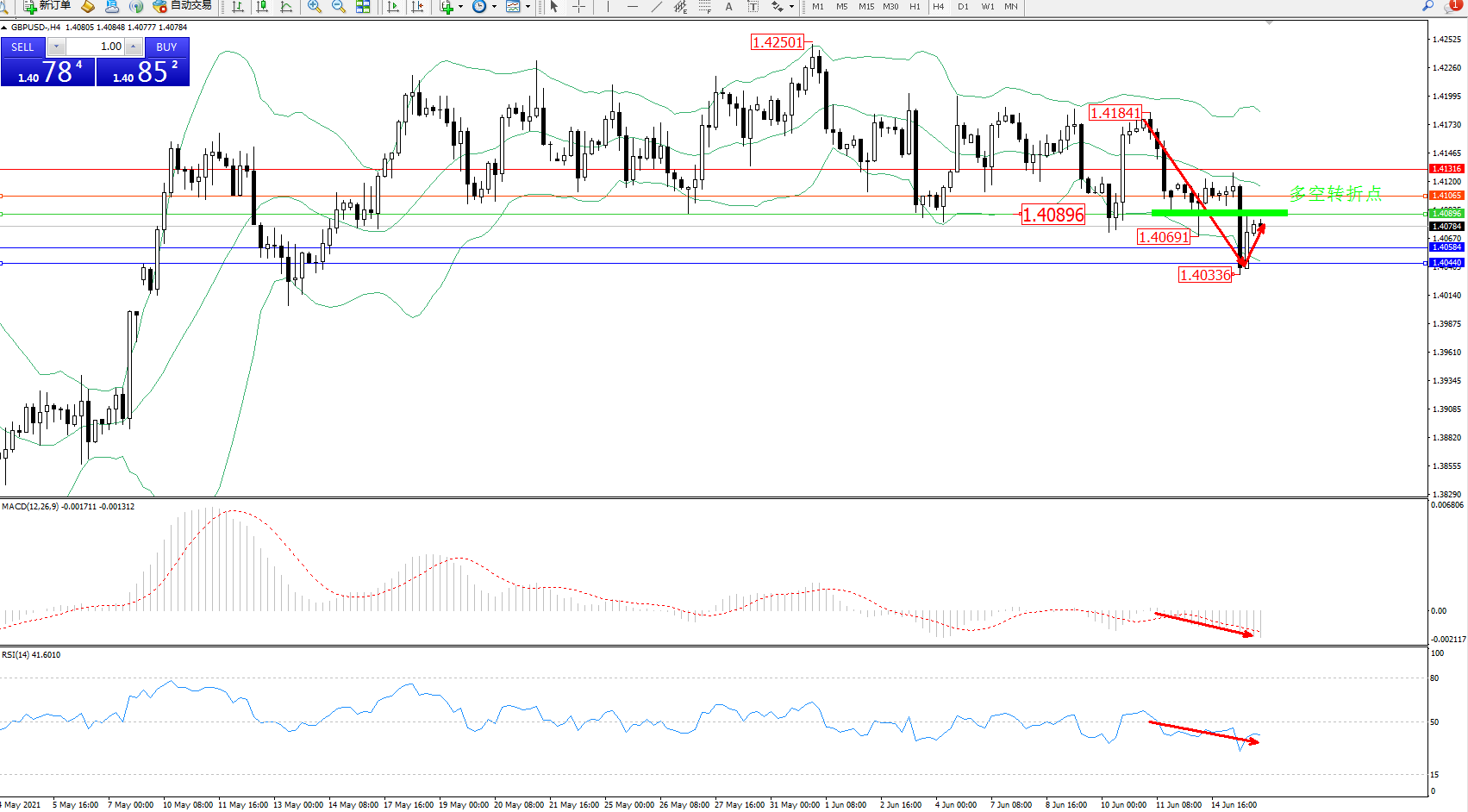 备选策略:1.40896下方看跌,目标1.40584、1.40440