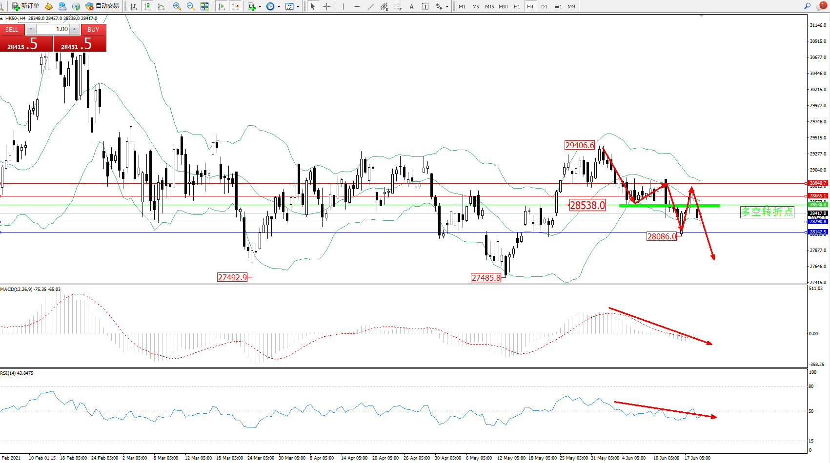 技术点评:空头动力延续布林带指标通道中下轨区间持续震荡向下移动,短暂回升至中轨附近节点后,再度向下移动,跌势未见最终止步迹象,布林带指标呈收口向下移动态势良好,触及下轨附近节点后持续下行中,MACD指标处于0轴线下方空头区域弱势整理下行中,RSI指标处于50均衡线下方窄幅整理不断平移中;