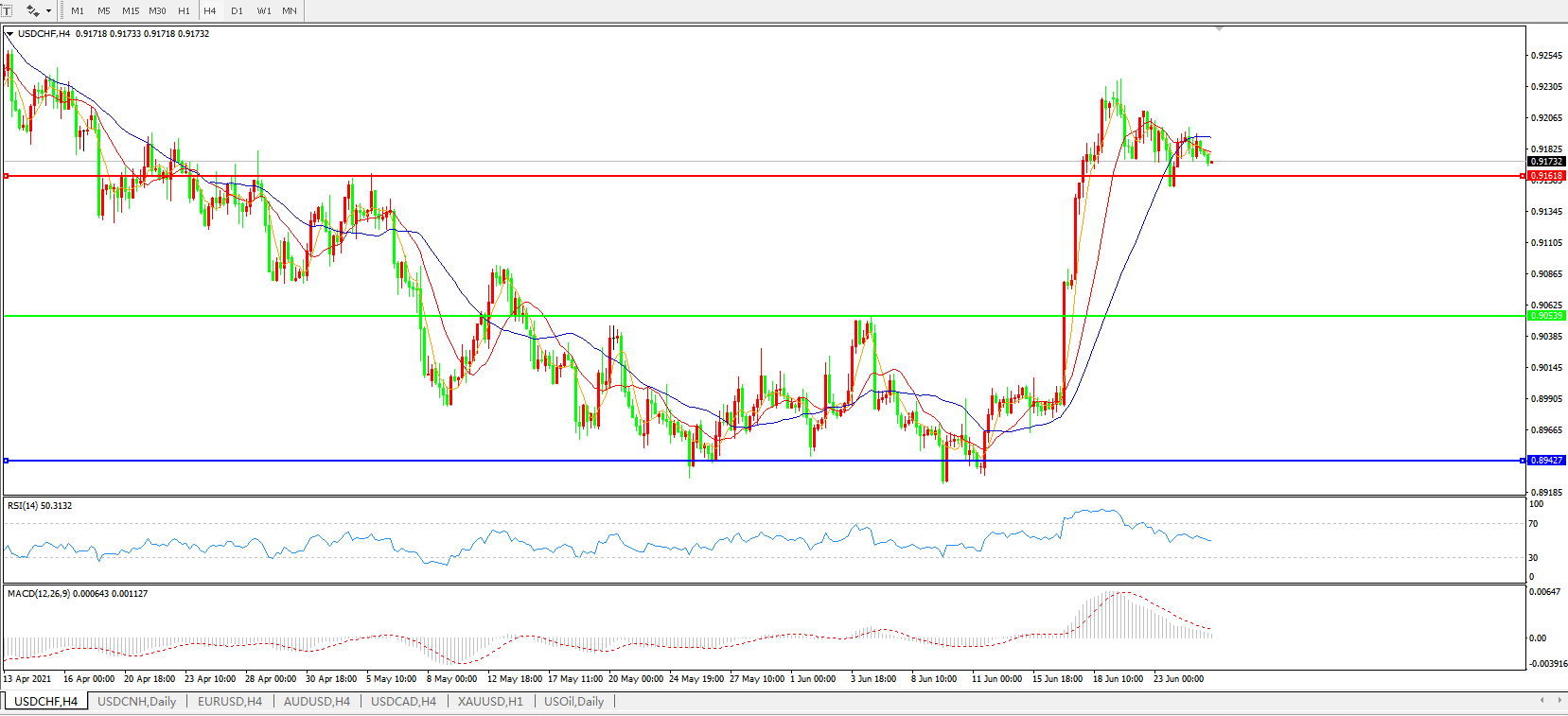 美元兑瑞郎USDCHF    4小时图: