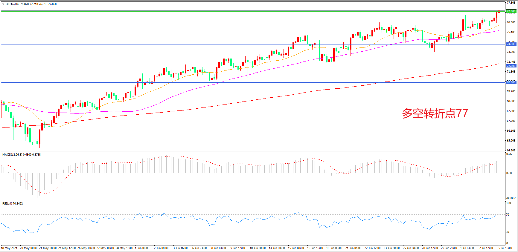 交易策略:在77.00之上看涨,目标77.00 83.00