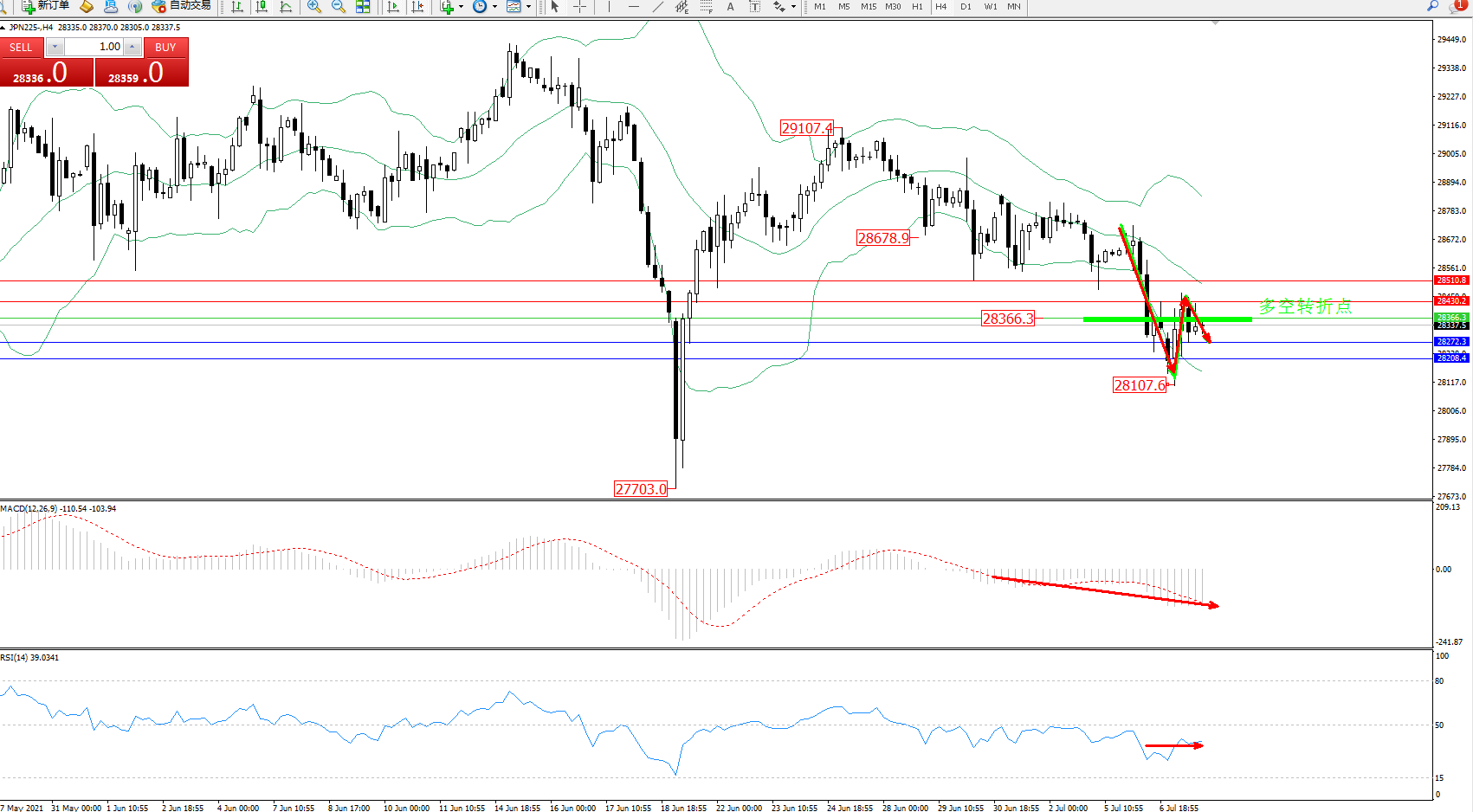 日经指数JPN225——4小时K线图显示: