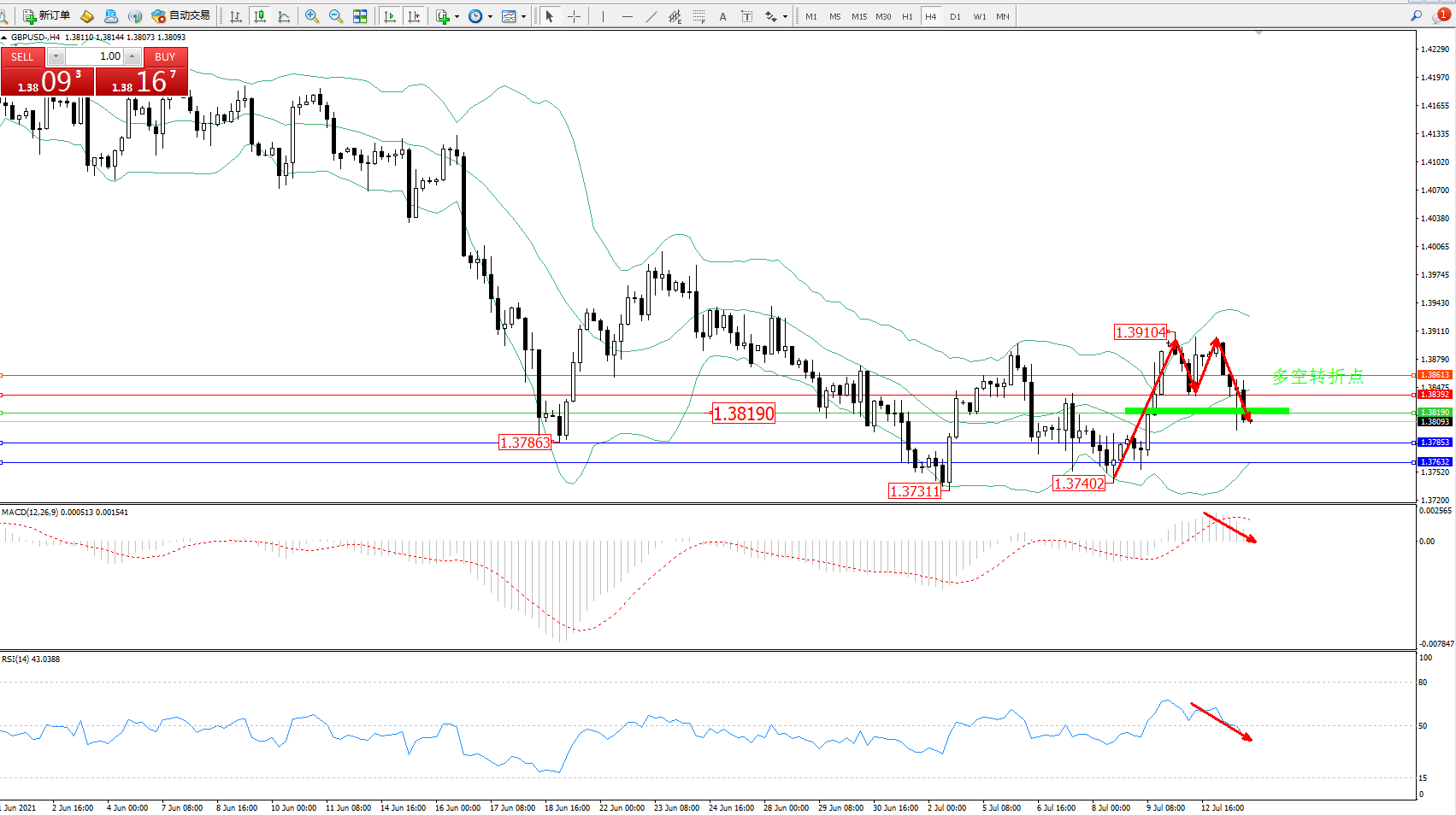 交易策略:1.38190下方看跌,目标1.37853、1.37632