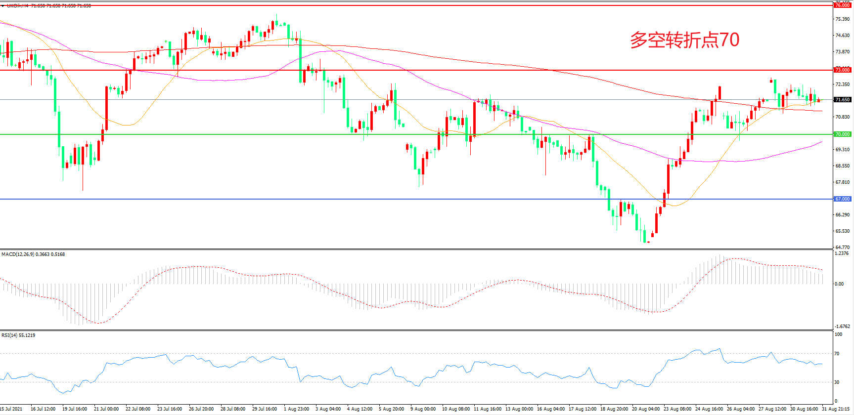多空转折点:70.00