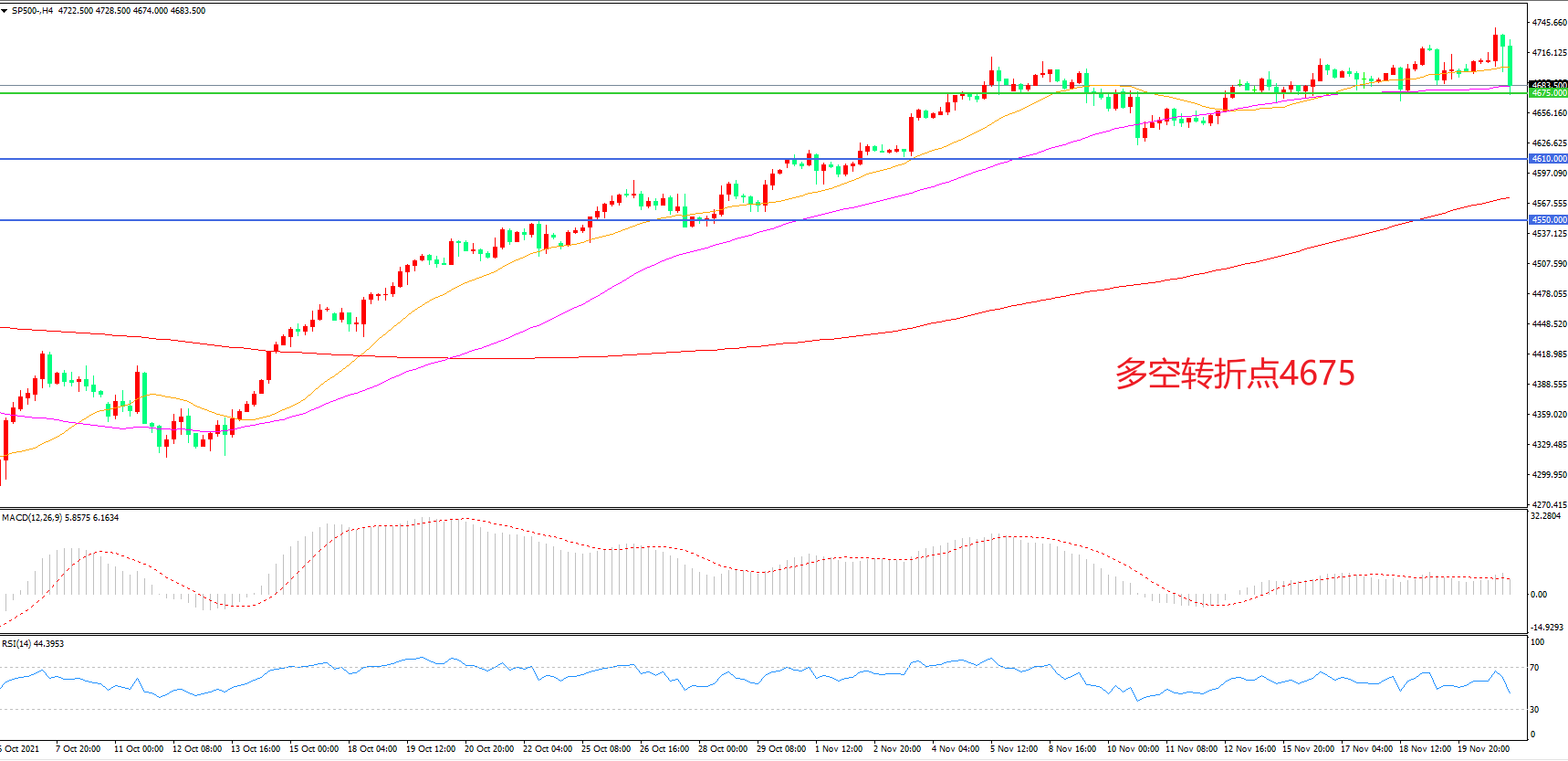 周一(11月22日),拜登提名鲍威尔连任美联储主席后,交易者预期美联储将加快速度Taper,美元指数和美国国债收益率集体拉升,标普500承压下挫,收报4683.50点。目前投资者鲍威尔极有可能采取紧缩的政策,一旦美联储决定采取更积极的措施遏制物价上涨,那么美股可能会出现严重回调。
