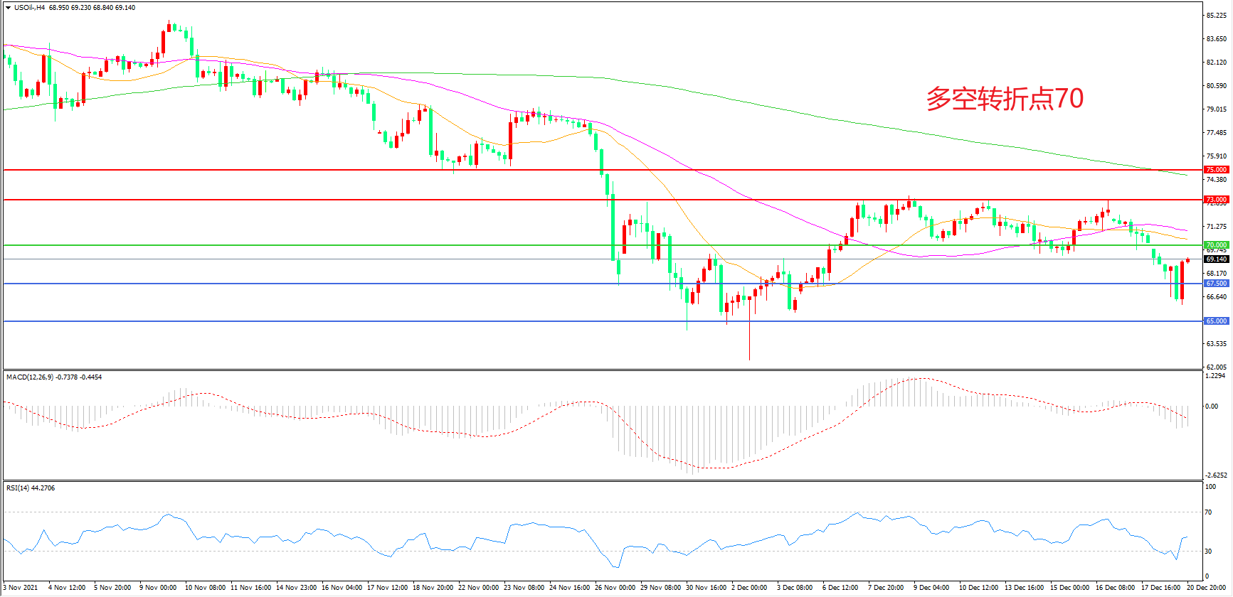 多空转折点:70.00