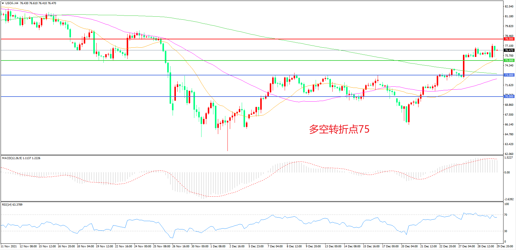 交易策略:在75.00之上看涨,目标78.00        80.00