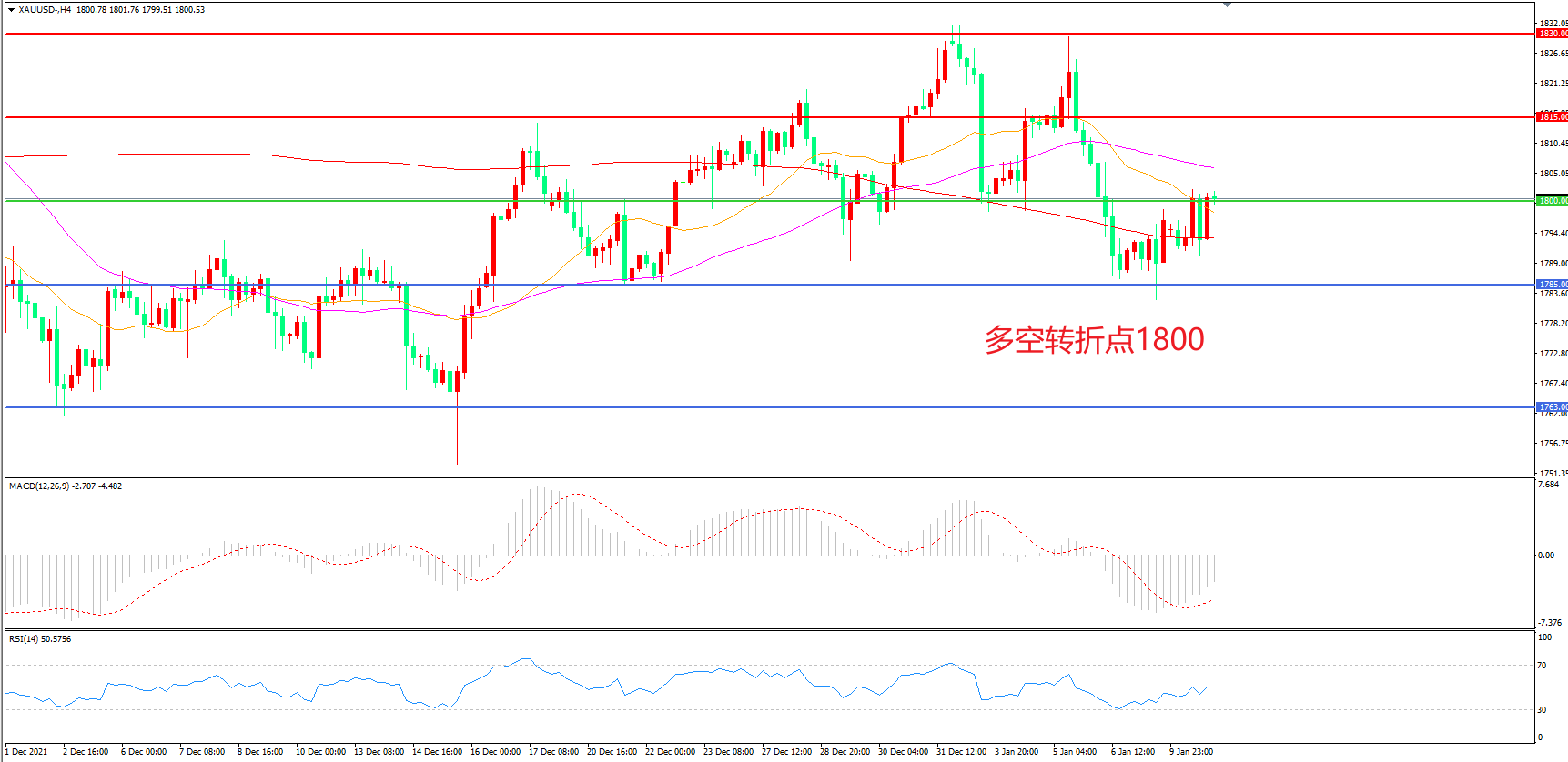 备选策略:在1800.00之上看涨,目标1815.00 1830.00