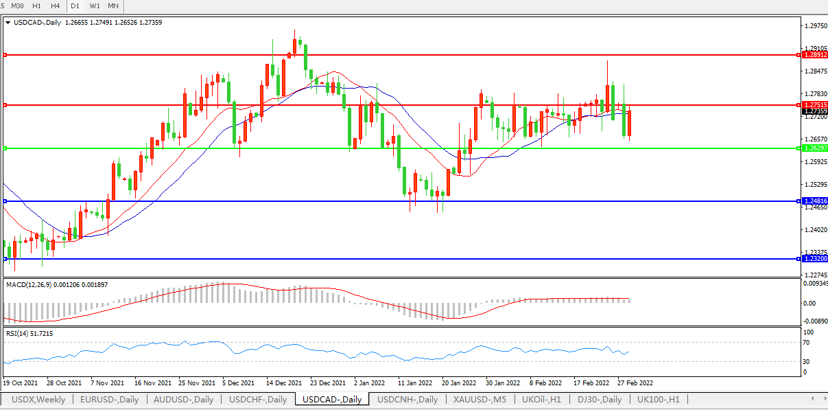 美元兑加元上涨0.55%至1.2740,在加拿大央行在周三公布政策决定之前,投资者减持了加元多头。