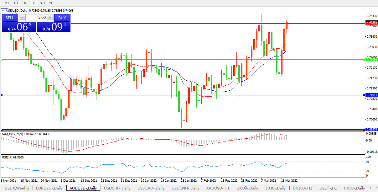 交易策略:0.7250上方看涨,目标0.7400、0.7550