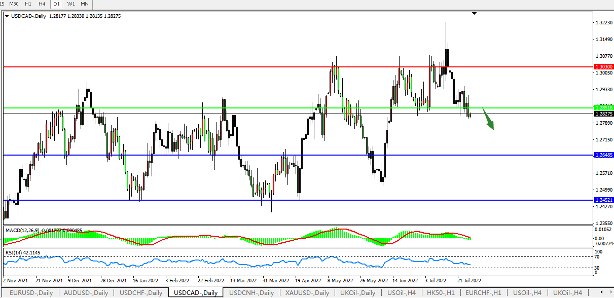 USDCAD:1.2850支撑被击穿 USDCAD  CADJPY