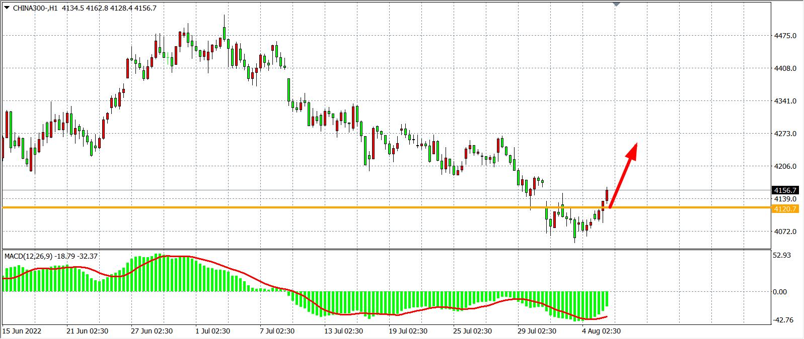 1小时图看,沪深300在4050获得支撑后反攻向上,顺利回补了前期跳空缺口,同时MACD于零轴之下量能缩短,目前支撑已上移至4120,日内在该位之上继续看反弹,在4120之上看4200-4270