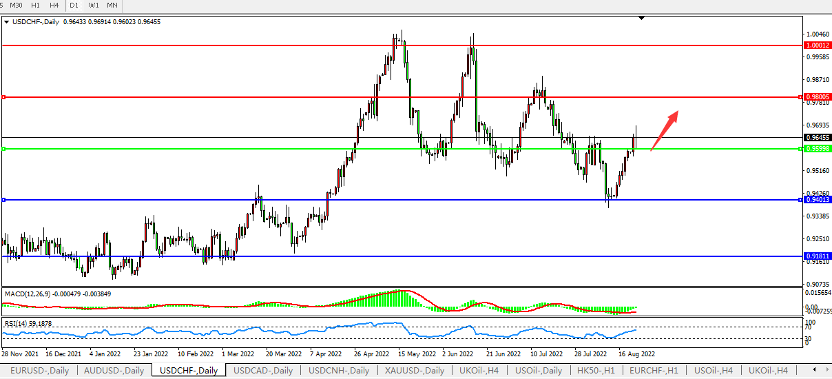 交易策略:0.9600上方看涨,目标0.9800,1.0000
