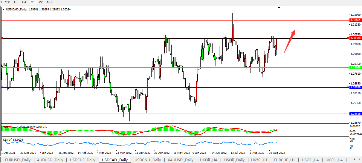 日线图看:短期汇价迅速拉升,MACD运行于0轴上但量能不足,RSI趋于平缓,预计短期汇价大概率将进一步上行。