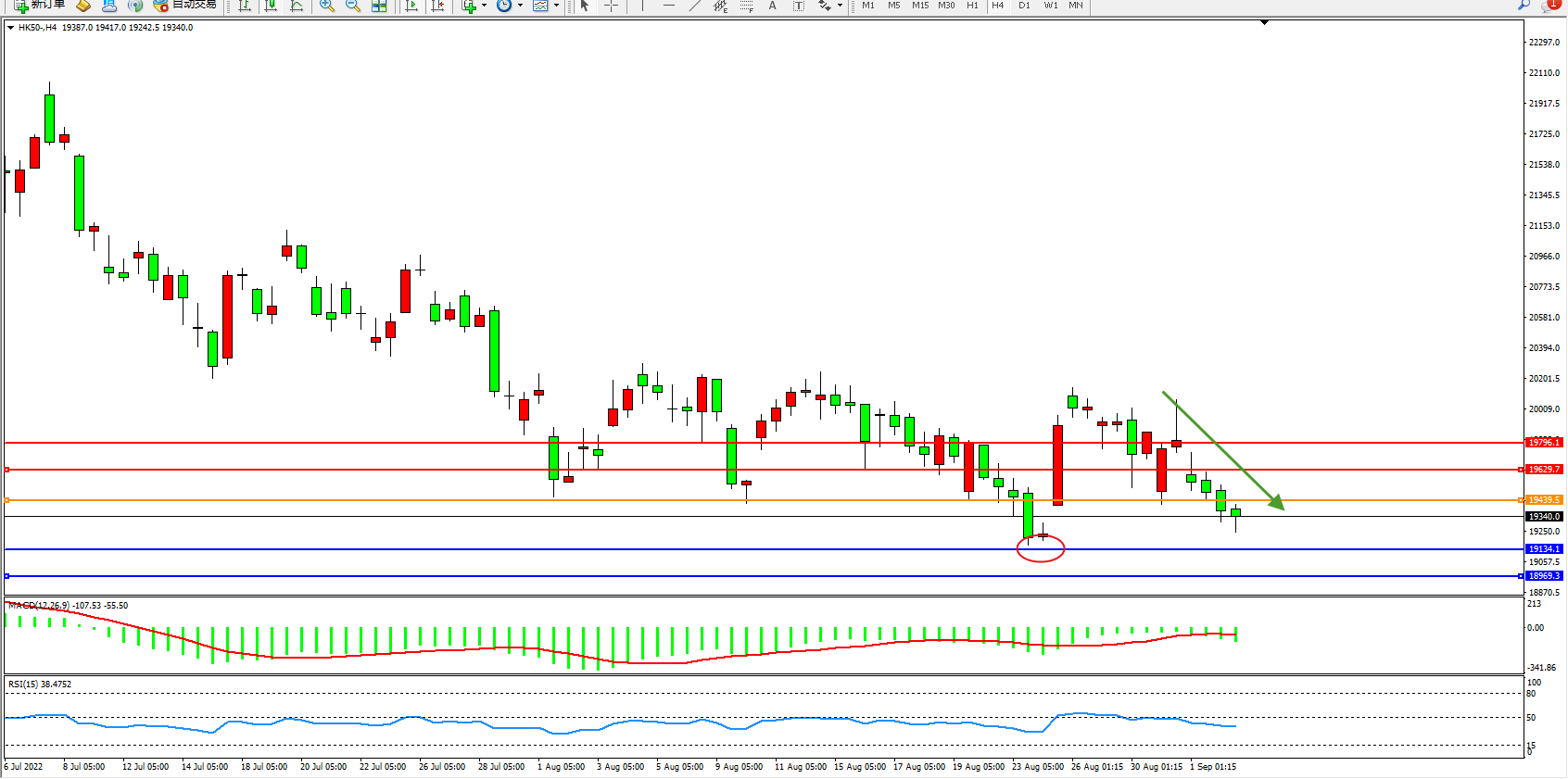 香港恒生指数9月2日(周五)收盘下跌145.22点,跌幅0.74%,报19452.09点;市场笼罩美激进加息预期,港股再度下跌,恒生科技指数跌1.44%。大型科技股普跌,南下资金逆势净流入11.05亿港元,大市成交额为1102亿港元。