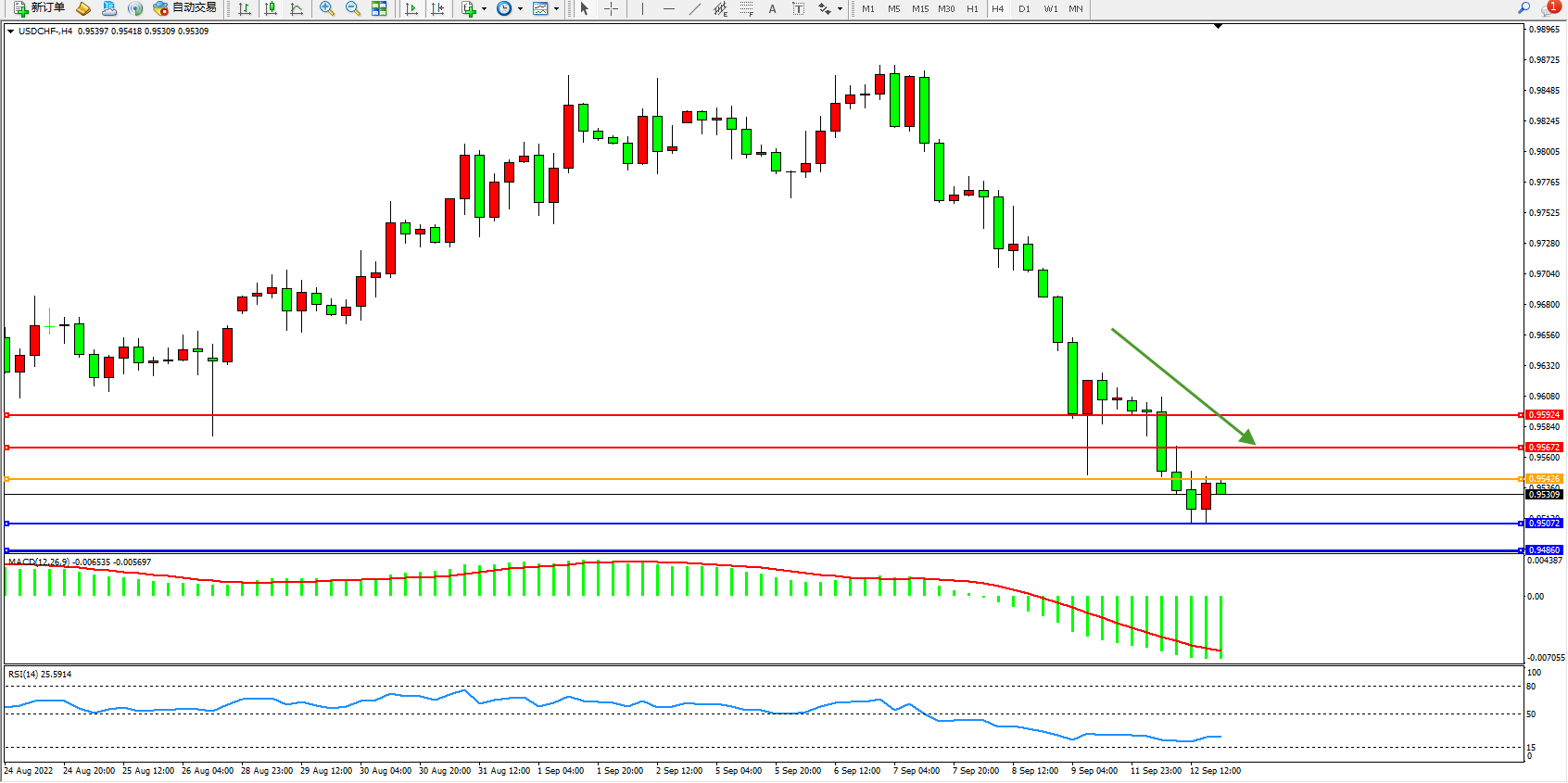 交易策略:0.95426下方看跌,目标0.95072、0.94860