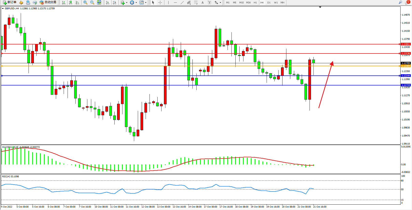 交易策略:1.12580上方看涨,目标1.13136、1.13551