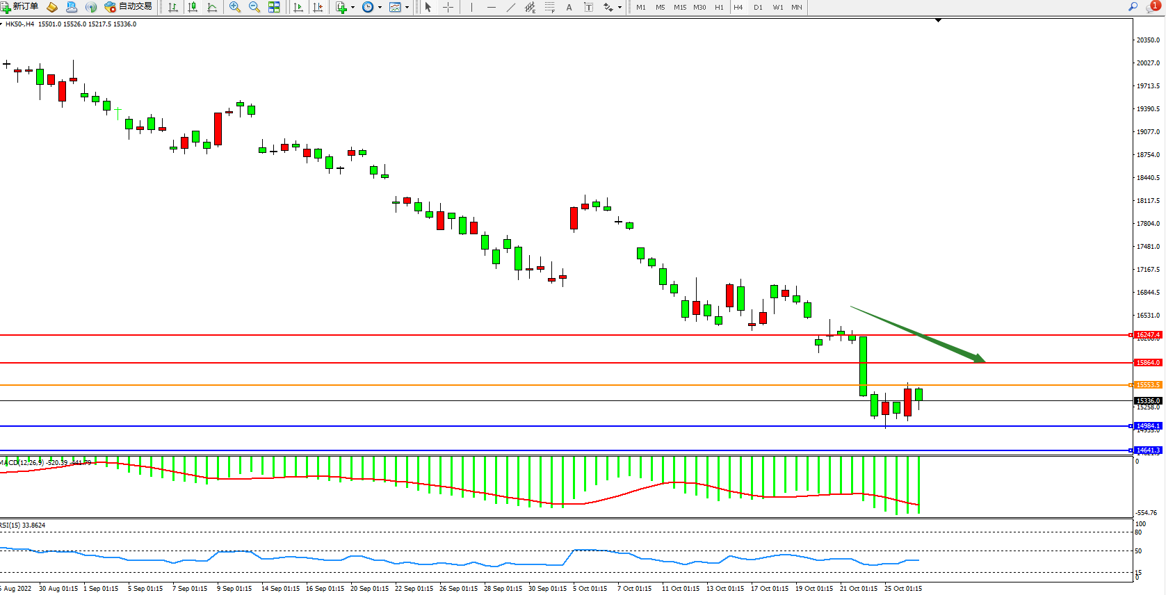 香港恒生指数10月26日(周三)收盘上涨152.08点,涨幅1.0%,报15317.67点;受美股连续上涨影响,港股继续昨日反弹行情,恒生科技指数一度涨近5%,大型科技股普遍上涨推动大市上扬,美团涨5%,小米、快手涨3.5%,腾讯涨2.5%,今日南下资金净流入65.19亿港元,大市成交额为1307亿港元。