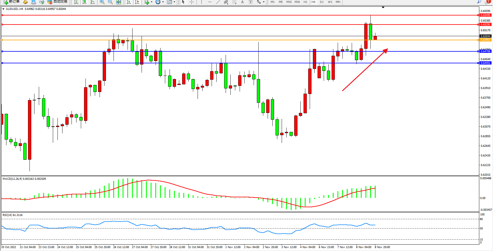 交易策略:0.64954上方看涨,目标0.65292、0.65495