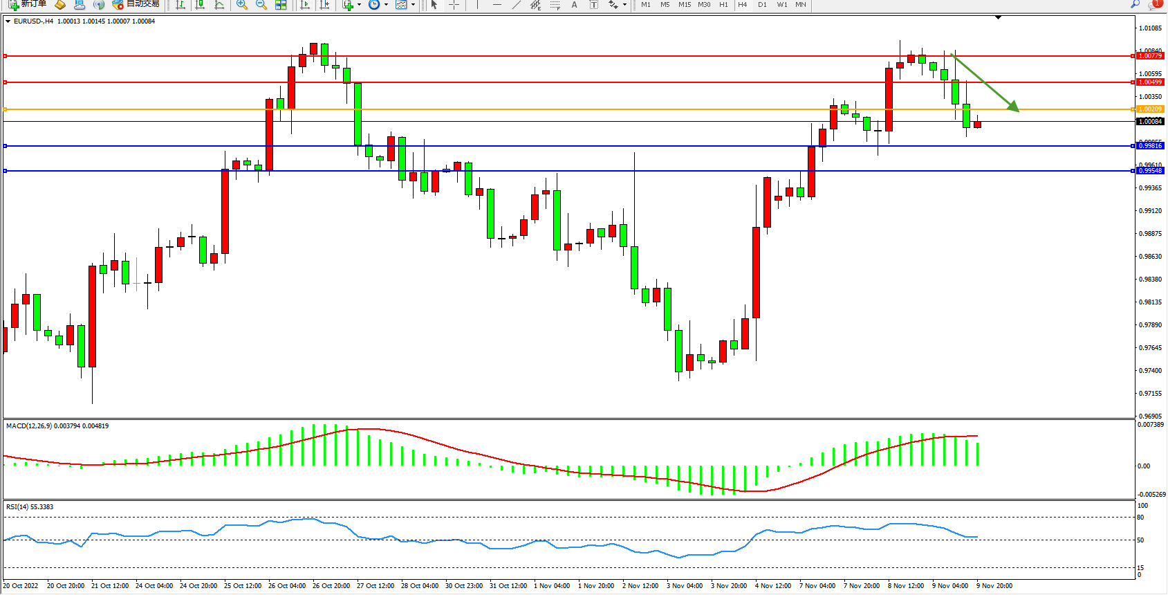 欧元兑美元维持1.00093附近震荡,欧元区经济在10月份出现收缩,新订单和预期的前瞻性指标表明,经济下滑将进一步恶化。市场预测,欧元区第四季度GDP环比将收缩0.5%,这将是自2009年第一季度以来的最大降幅(不包括疫情时期)。