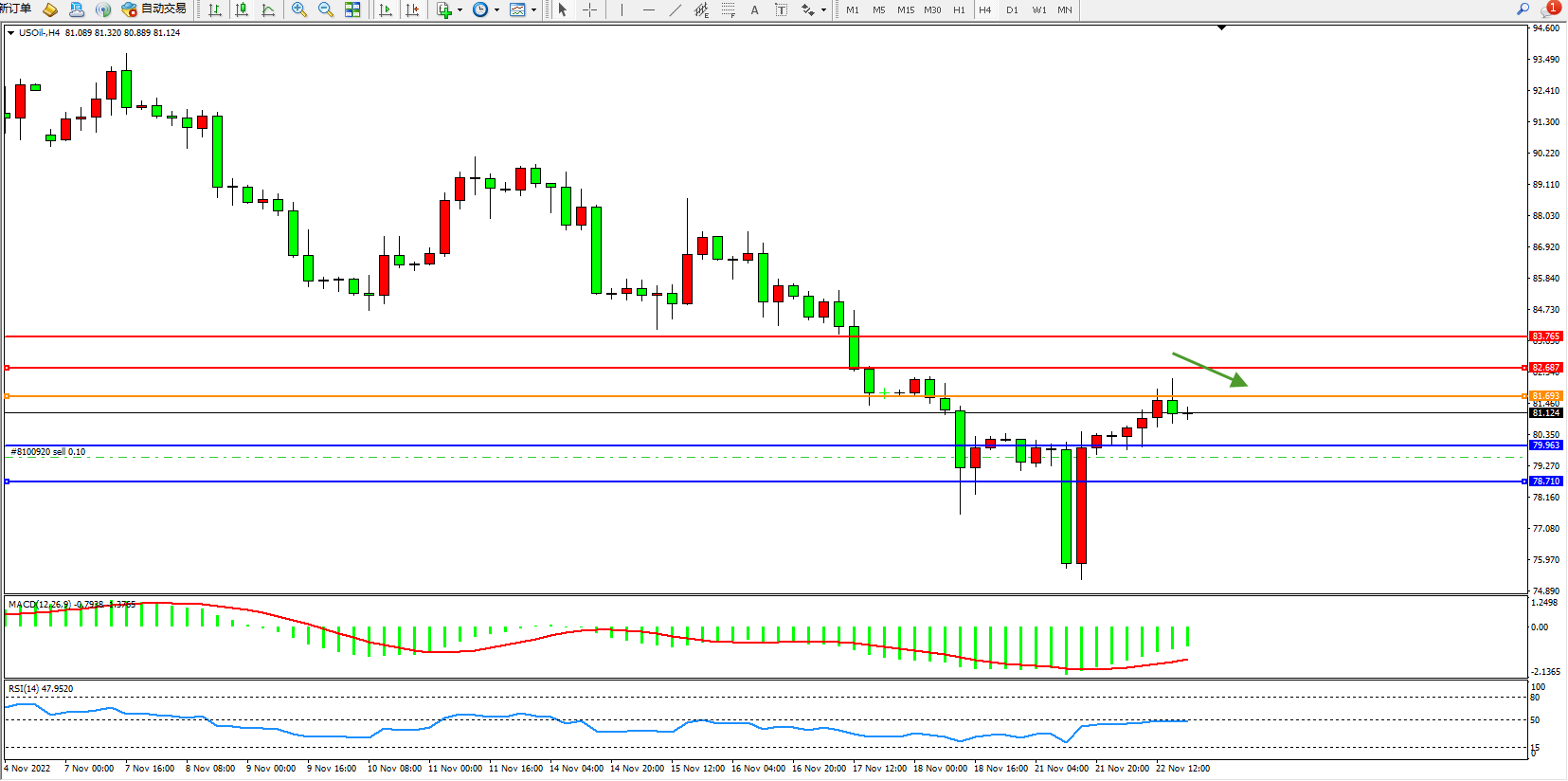 原油维持81.124附近震荡,石油输出国组织及其合作伙伴(OPEC+)可能12月4日的会议上考虑增产多达500000桶/日,隔夜油价因此一度跌逾5%,创1月份以来新低。