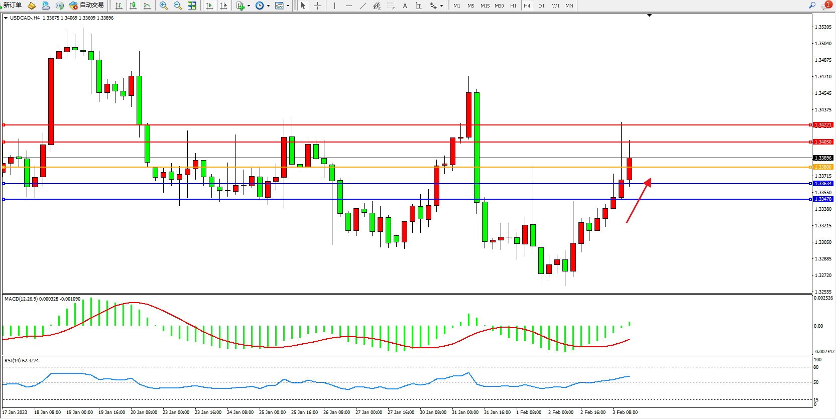 交易策略:1.33800上方看涨,目标1.34050、1.34221