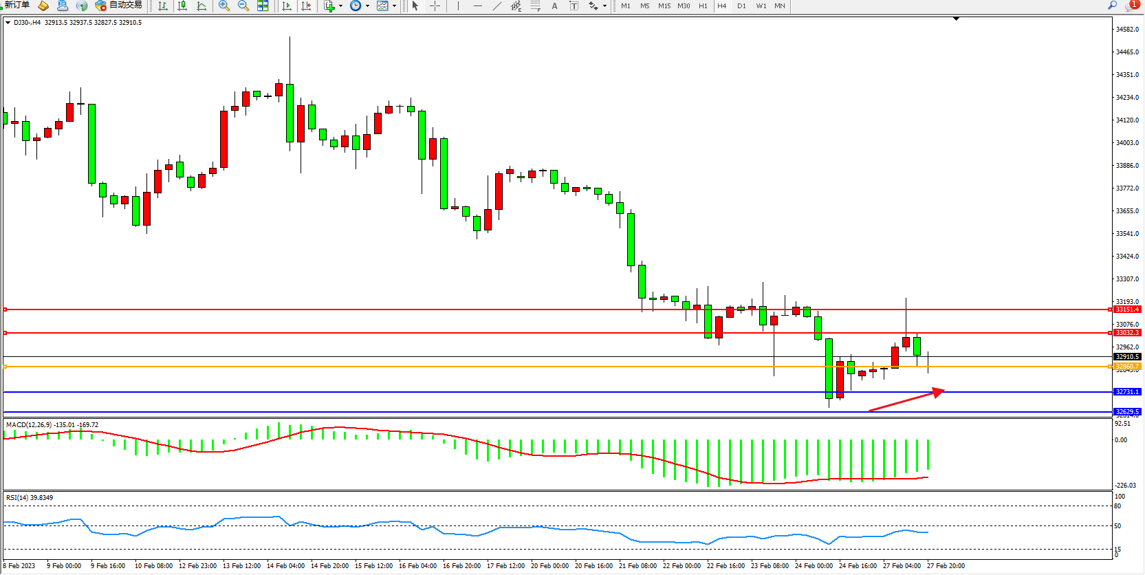 道琼斯指数2月27日(周一)收盘上涨72.37点,涨幅0.22%,报32889.29点;美国工厂的企业设备订单出现5个月来最大增幅,表明尽管借贷成本高企,经济不确定性挥之不去,但企业仍在继续进行较长期资本投资。