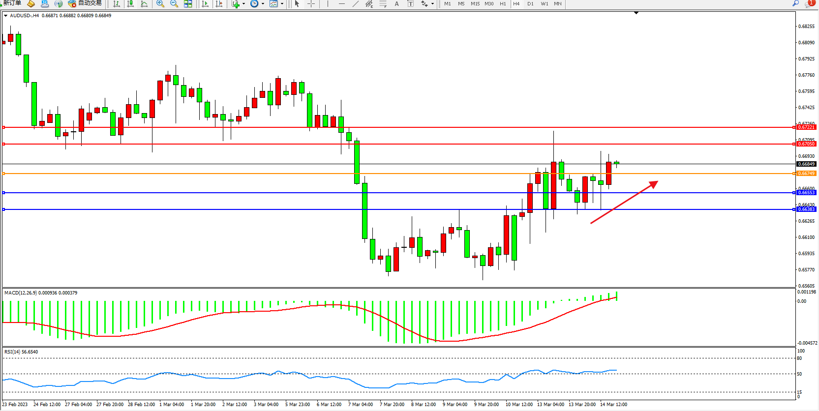 交易策略:0.66749下方看跌,目标0.66553 0.66383
