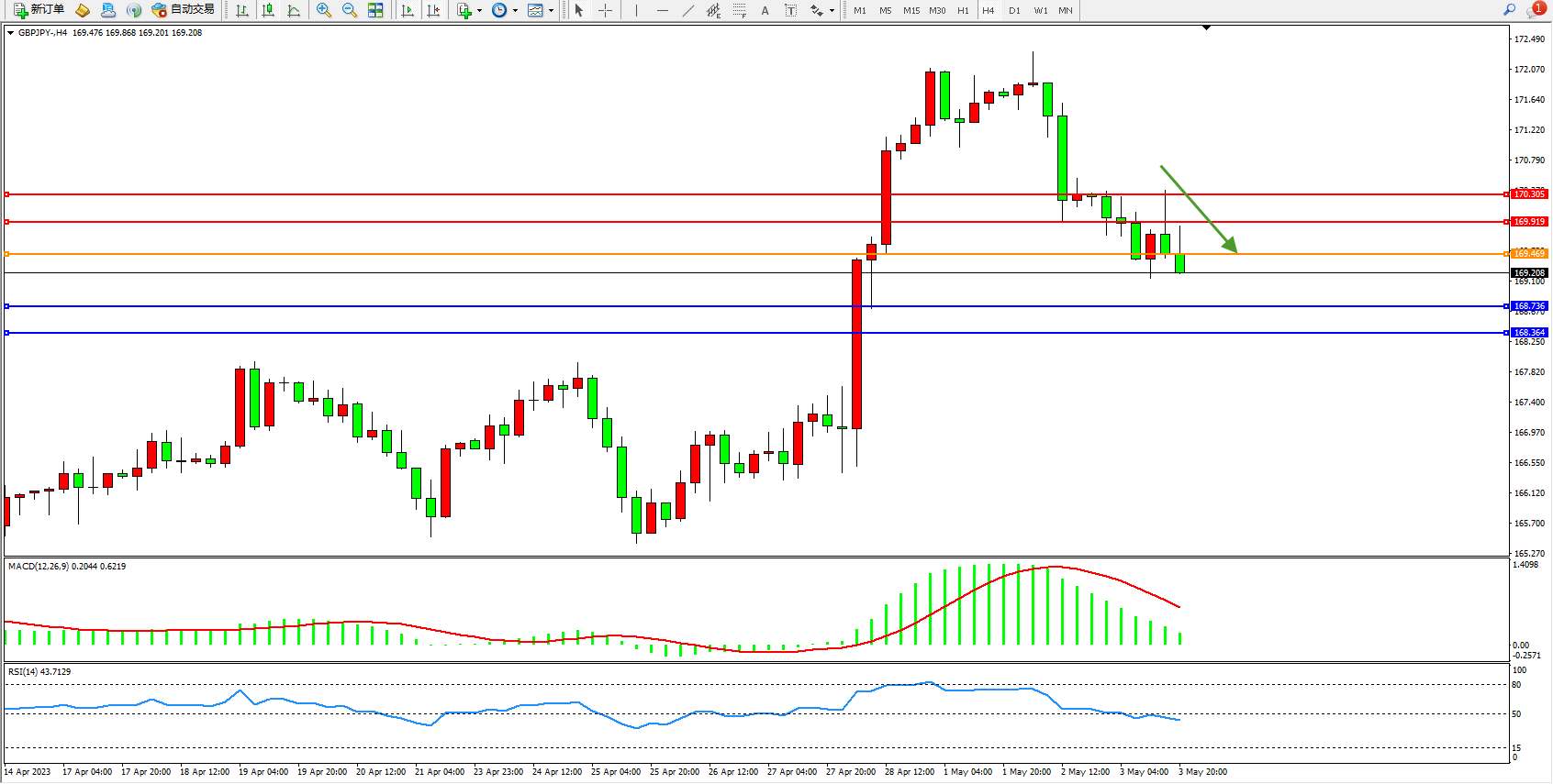 英镑兑日圆维持169.208附近震荡,市场预计英国央行将在5月和6月再加息两次,各加息25个基点。政策收紧对英国经济的影响程度意味着今年晚些时候将出现温和衰退,2024年将出现疲弱增长,但近期强于预期的通胀数据将迫使英国央行在短期内继续加息。