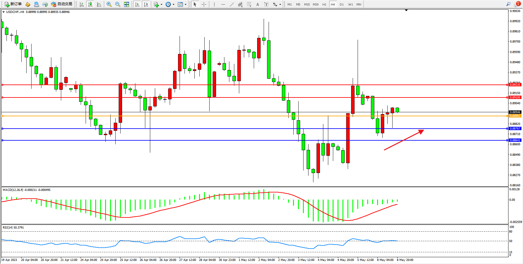 美元兑瑞郎维持0.88946附近震荡,投资者对美国经济感到担忧,纷纷增持避险资产。对美国银行业压力再度出现、经济增长放缓以及地缘政治紧张局势加剧等因素的担忧,都是对于瑞郎投资好兆头。