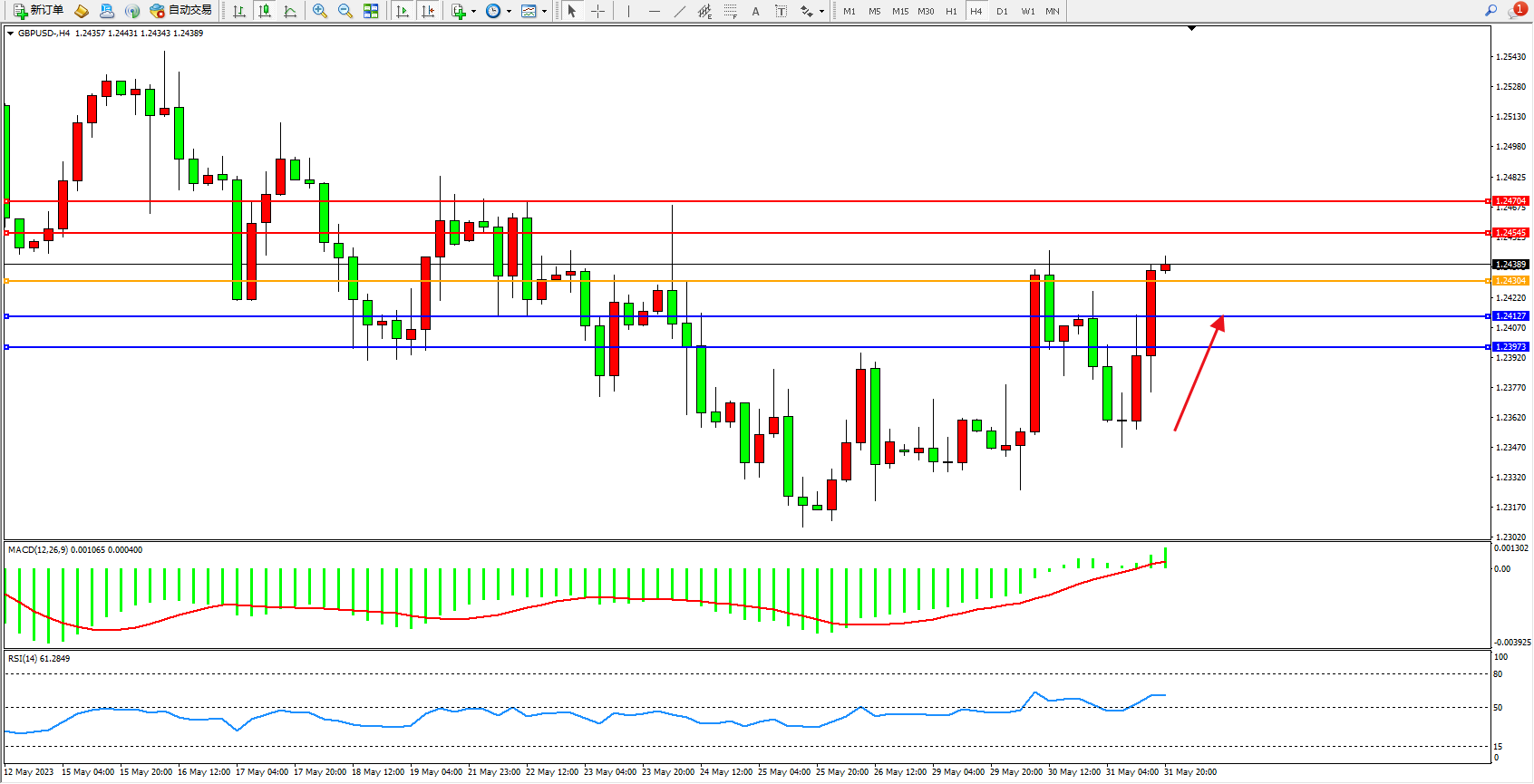 阻力位:1.24545 1.24704
