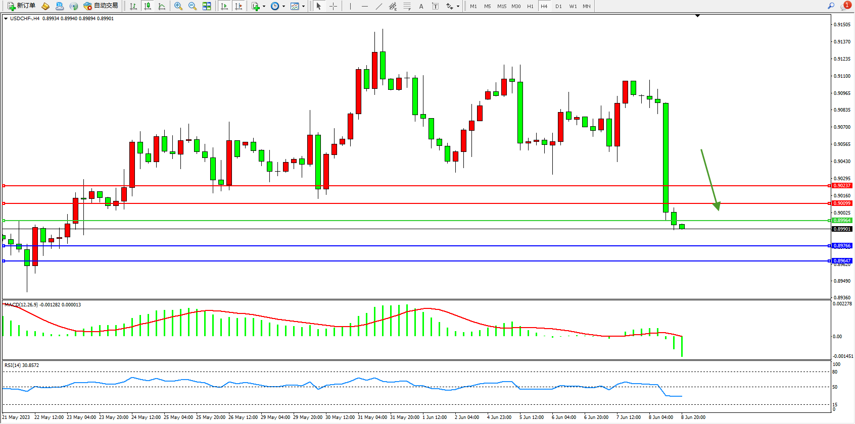 交易策略:0.89964下方看跌,目标0.89766 0.89647