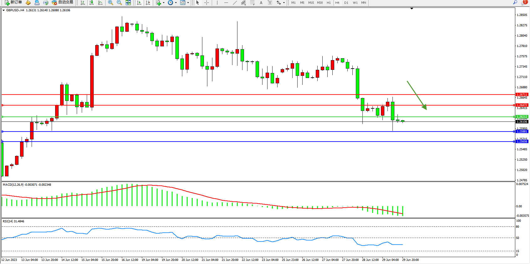 交易策略:1.26212下方看跌,目标1.25881  1.25656