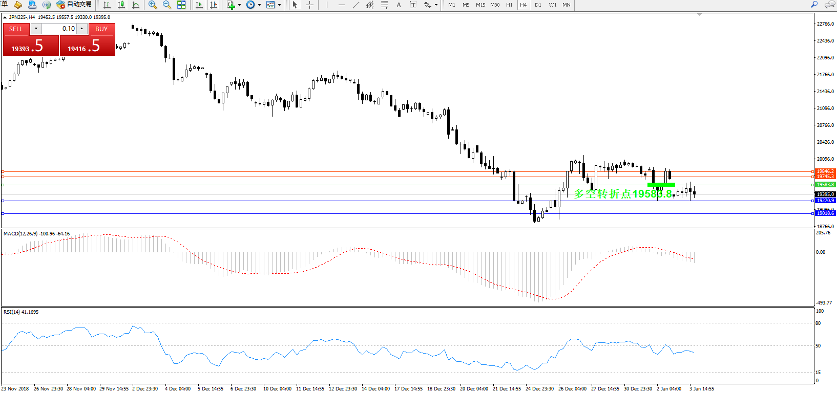 交易策略:19583.8下方看跌,目标19270.9、19018.6